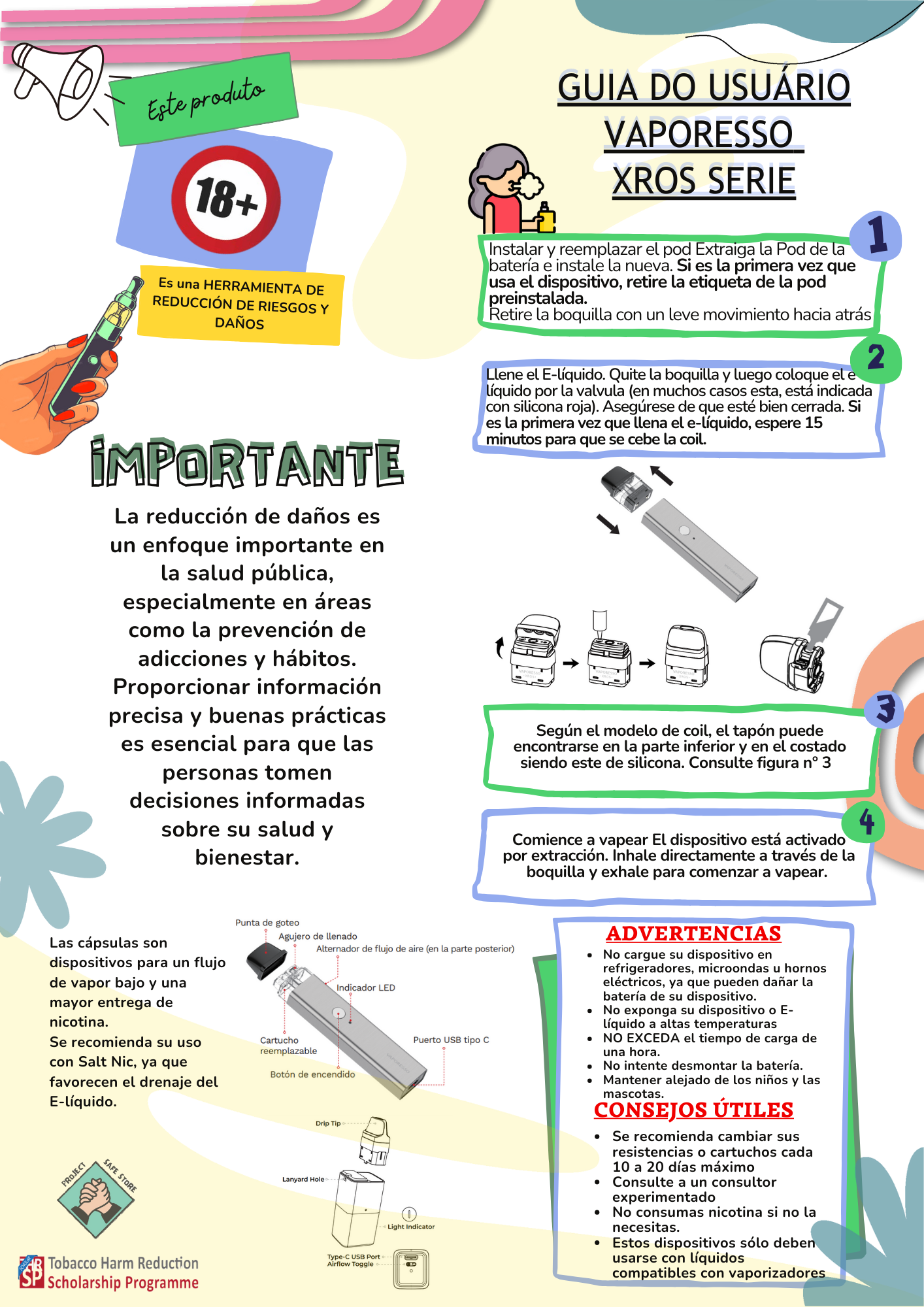 Descubre nuestros flyers informativos y fáciles de compartir, con datos clave sobre vapeo, salud y reducción de daños. Diseñados para aprender rápido y difundir información clara y responsable.