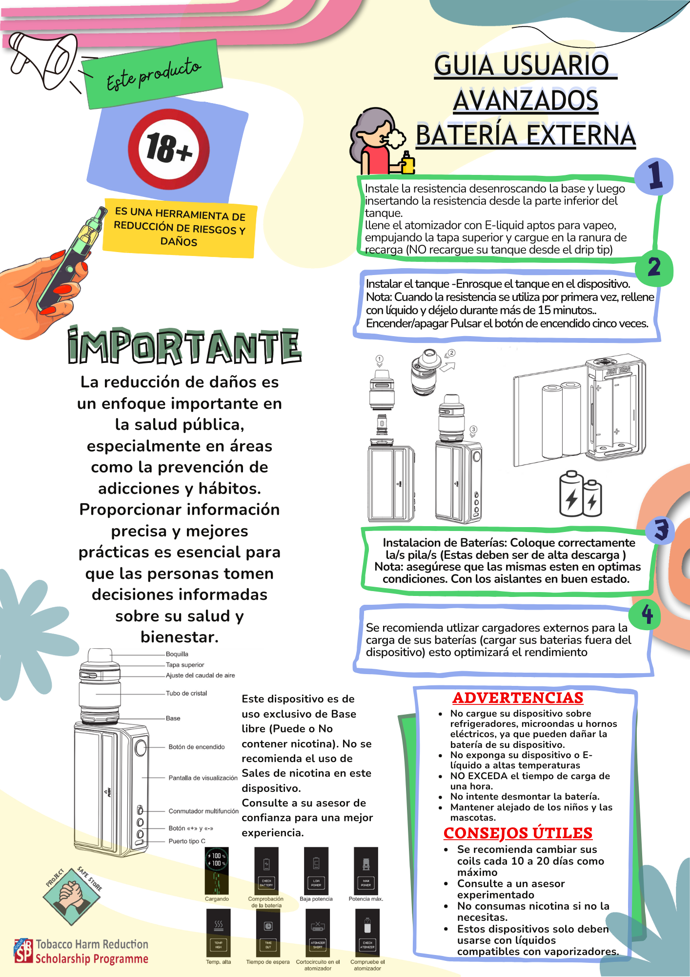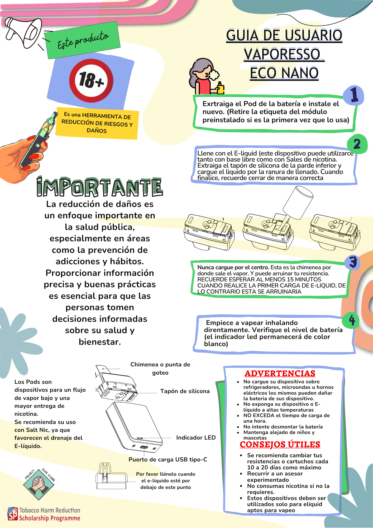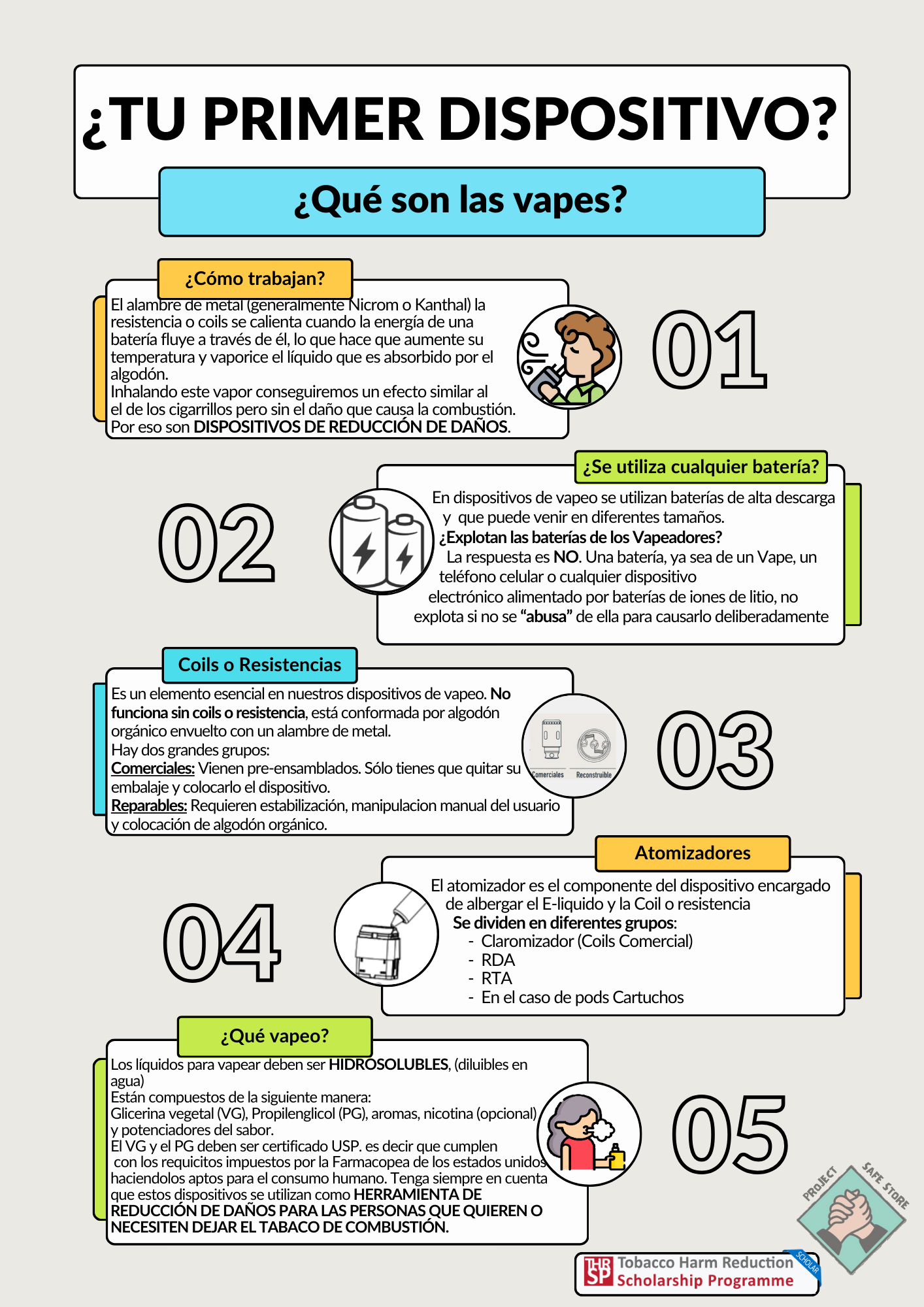 Descubre nuestros flyers informativos y fáciles de compartir, con datos clave sobre vapeo, salud y reducción de daños. Diseñados para aprender rápido y difundir información clara y responsable.